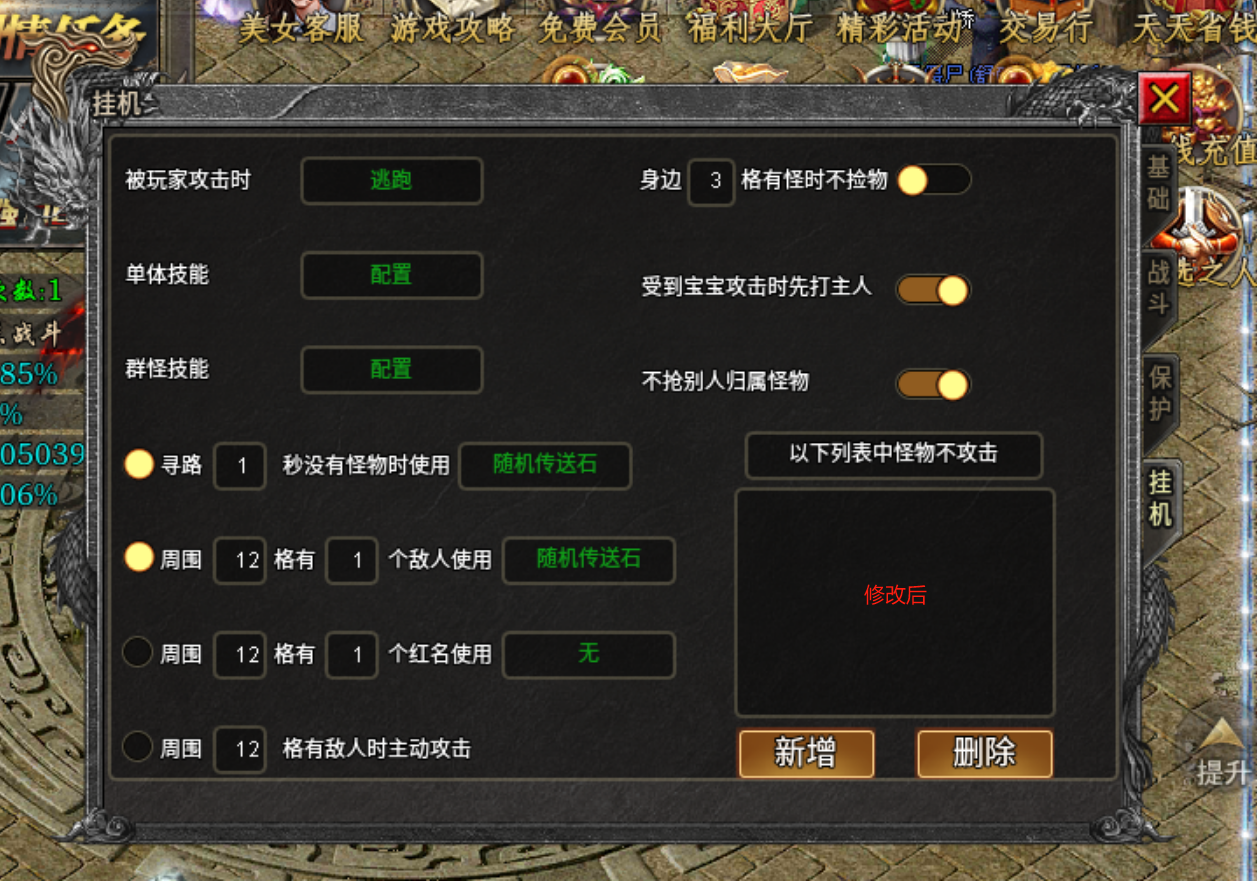 有很多服F12内挂中,没有保护设置,没有遇人随机/无怪随机等,修改后可实现全功能