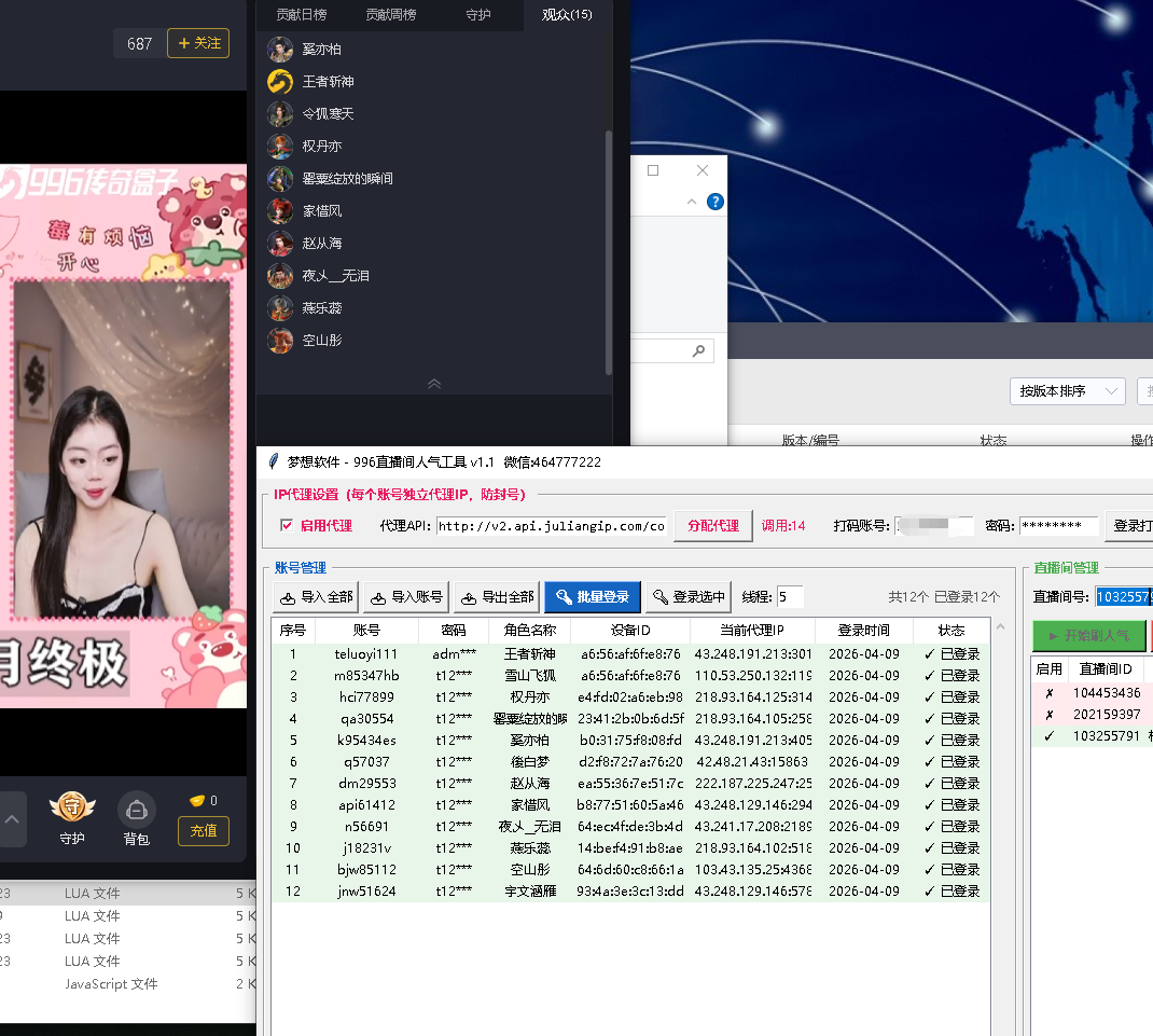 | ✅ 持续心跳刷人气 | 每轮显示观众数/人气 |